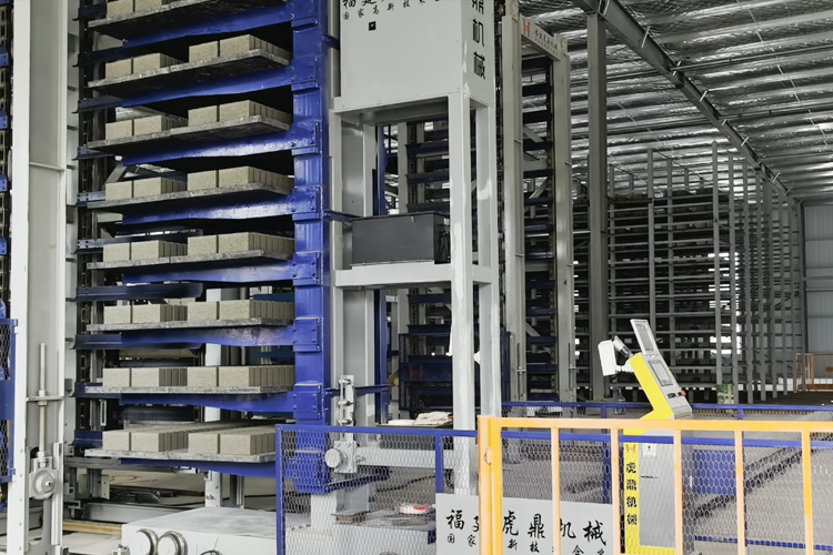 The Tiger HQ12 fully automated block production line integrates batching, molding, and curing processes, achieving continuous operation through PLC automatic control. The curing kiln is responsible for steam curing the wet blocks for 8 hours, accelerating strength development and shortening the cycle to 7 days to achieve the effect of the traditional 28 日, thus improving production efficiency and capital turnover.