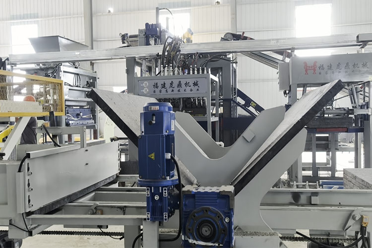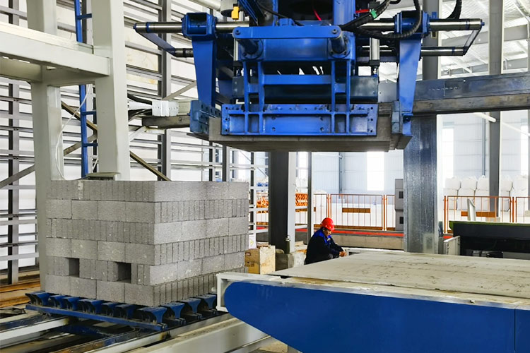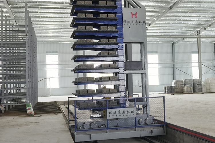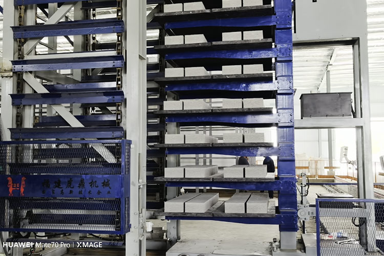 The Tiger HQ12 fully automated block production line integrates batching, molding, and curing processes, achieving continuous operation through PLC automatic control. The curing kiln is responsible for steam curing the wet blocks for 8 hours, accelerating strength development and shortening the cycle to 7 days to achieve the effect of the traditional 28 days, thus improving production efficiency and capital turnover.
