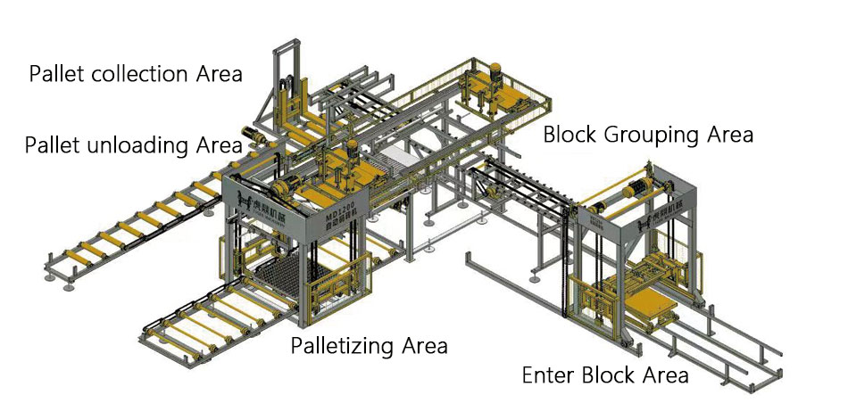 Automatic collecting bricks advantage(Cuber/Palletize/Wrapper/Strapper )