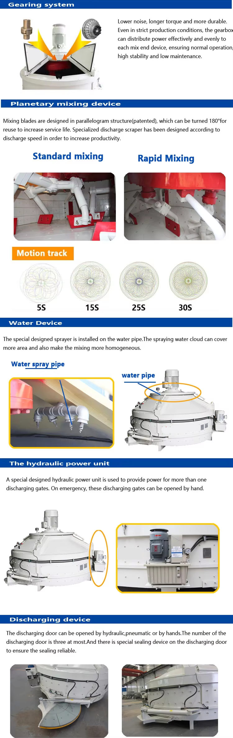 The Tiger Planetary Concrete Mixer outperforms traditional mixers with its innovative design. Unlike ordinary mixers that rely on single-axis rotation, creating dead zones and uneven mixing, the Tiger model uses a planetary motion system. Here, multiple blades rotate around a central axis while also spinning on their own axes, ensuring thorough and homogeneous blending without blind spot. This advanced mechanism enhances mixing efficiency, reduces energy consumption, and minimizes noise and pollution. Additionally, it offers superior adaptability across various materials, making it ideal for high-performance concrete production and other industries requiring precise consistency.