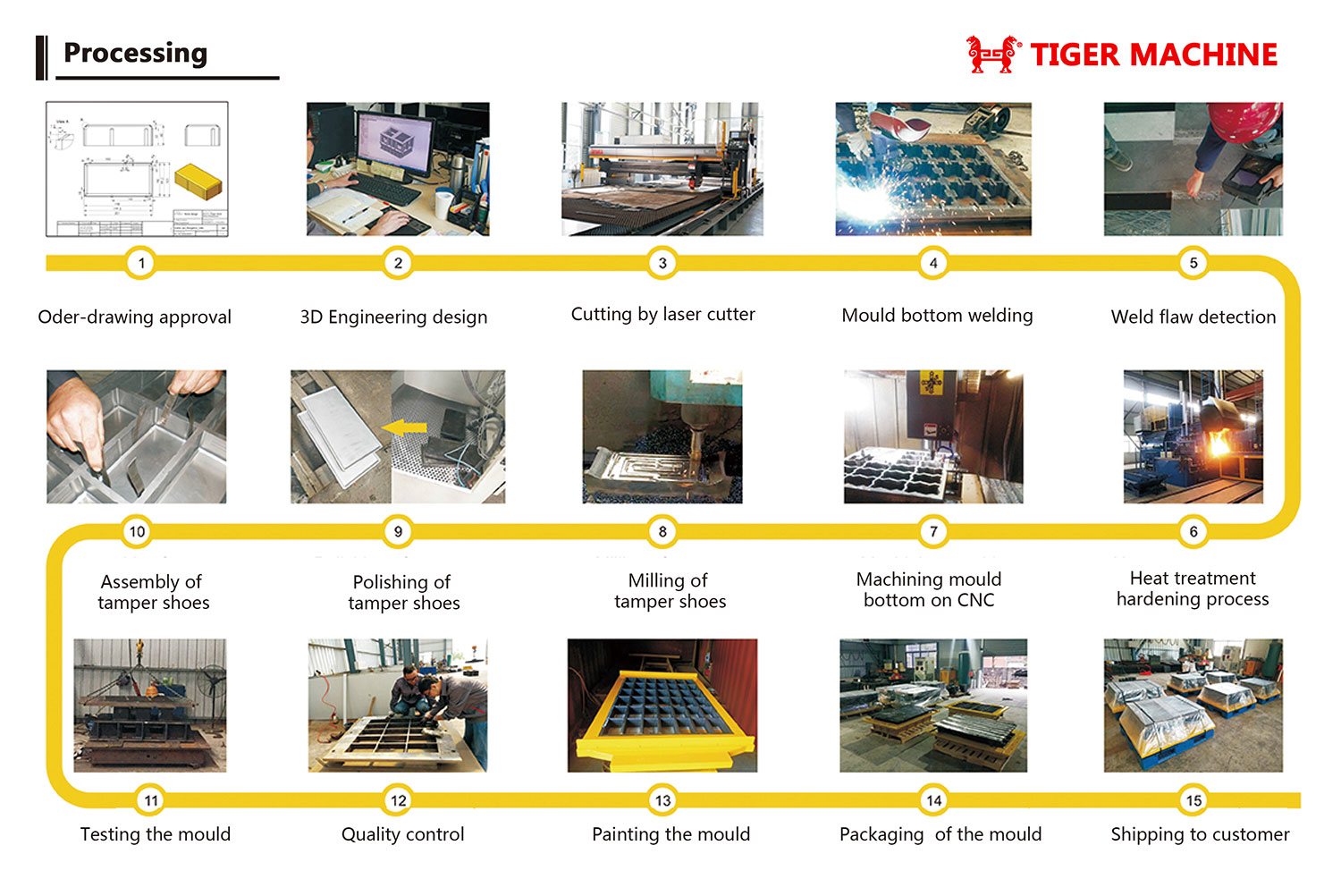 Tiger Concrete Block Machine Mold Manufacturer specializes in producing high-quality block machine molds, paving brick molds, and curbstone molds. Our paving brick molds, tactile paving molds, permeable brick molds, and plaza paving brick molds are made from high-quality materials and undergo nitriding heat treatment to ensure durability and wear resistance, thus extending their service life.