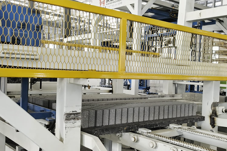 The Tiger HQ12 fully automated block production line integrates batching, molding, and curing processes, achieving continuous operation through PLC automatic control. The curing kiln is responsible for steam curing the wet blocks for 8 hours, accelerating strength development and shortening the cycle to 7 days to achieve the effect of the traditional 28 days, thus improving production efficiency and capital turnover.
